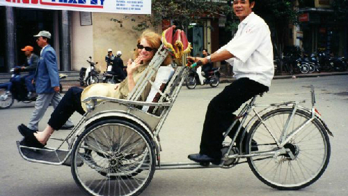 Du khách ngồi trên xích lô để tham quan thành phố. Ảnh: AdventureWomen.