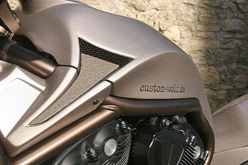Nhóm độ Custom-Wolf tự thực hiện các chi tiết khác như cần số, các thanh giằng, sơn xe… Bộ da bọc hiệu Ledermania và ống xả Leo Vince cũng được Custom-Wolf chỉnh sửa rất nhiều. Phiên bản độ được nhóm đặt tên là V-Rod X.![[Image: 1382019545-v_rod-8.jpg]](http://2.bp.blogspot.com/-sEMdEtfQYBU/UmHjCJUV2WI/AAAAAAAAAik/oXUBfgrtonI/s1600/1382019545-v_rod-8.jpg)