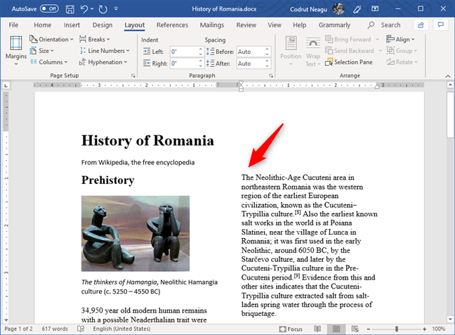 Bước 4: Như bạn có thể thấy trong ví dụ của chúng tôi, khi bạn làm như trên, Word sẽ ngay lập tức đặt cột tiếp theo bắt đầu ở vị trí bạn đã chọn.
