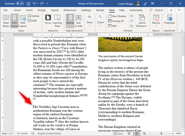 Bước 1: Để thêm dấu ngắt cột, trước tiên, hãy nhấp hoặc nhấn vào đầu văn bản mà bạn muốn bắt đầu trên cột tiếp theo.