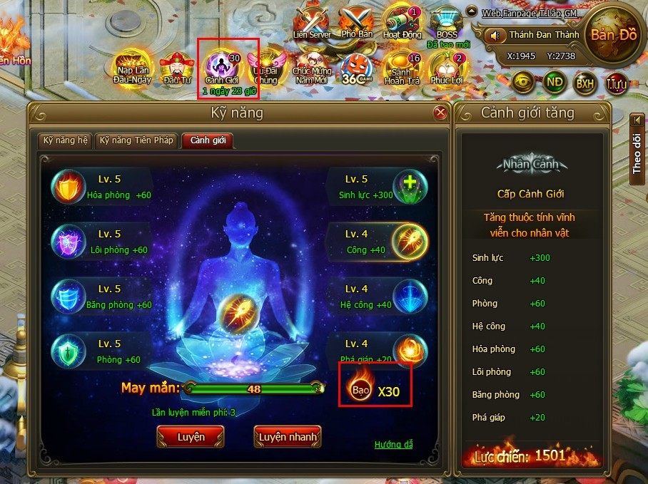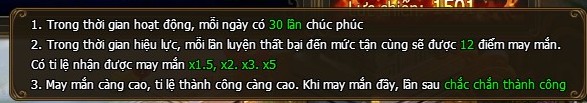 - Mỗi lần tăng cấp có xác suất nhận x1.5, x2, x3, x5 Bạo kích may mắn.