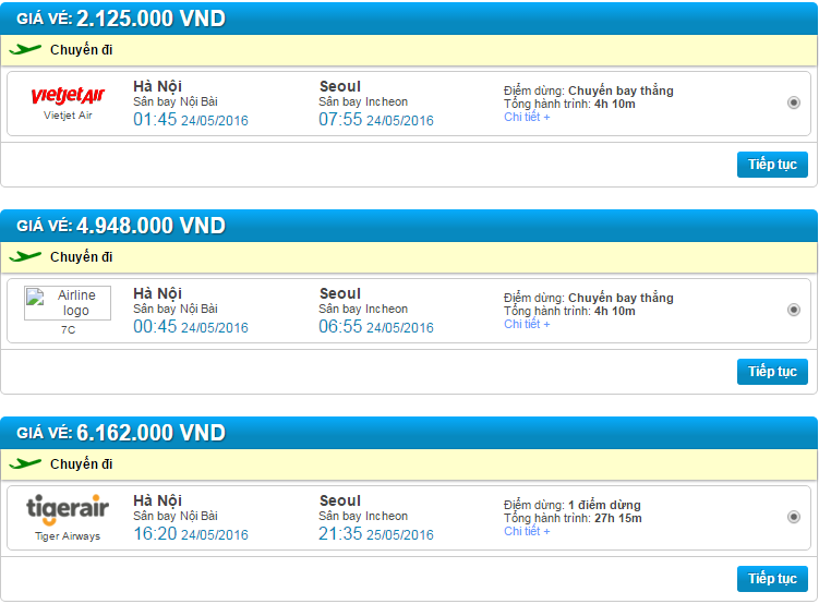Thông tin về giá vé máy bay Hà Nội đi Hàn Quốc