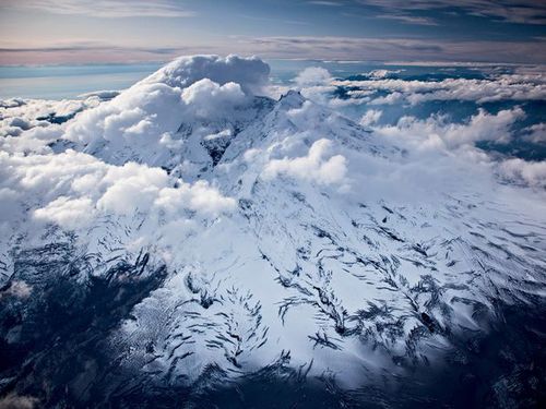 Những đám mây trắng xóa phủ lên đỉnh núi lửa Iliamna những họa tiết ấn tượng. Khung cảnh hùng vĩ mà thanh bình này đã tồn tại từ rất lâu. Bởi lần cuối cùng ngọn núi này hoạt động đã từ trước khi lục địa Âu ‘định cư’ ở vị trí hiện tại.