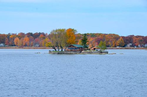 Những ngôi nhà nhỏ xinh ẩn hiện dưới hàng cây và thật thú vị khi nhìn thấy bên phải là hòn đảo cắm cờ Canada còn bên trái lại là cờ Mỹ. Đây chính là biên giới tự nhiên giữa hai quốc gia. Nhiều ngôi nhà xây vừa vặn trên một tảng đá có cả bàn để dùng bữa và ghế tắm nắng.