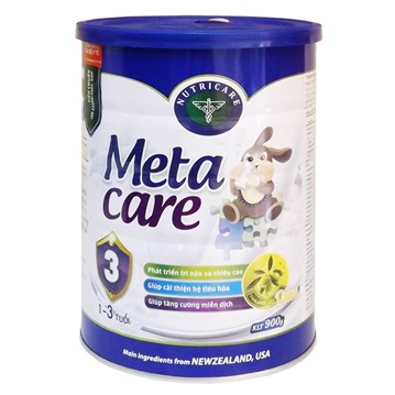 Sữa Meta Care 1 + cho đến số 2 số 3 có thành phần các chất dinh dưỡng cao hơn sữa công thức với Omega, đạm, Taurin, Vitamin, Prebiotics và đạm whey ... phù hợp với sự tăng trưởng và phát triển của trẻ