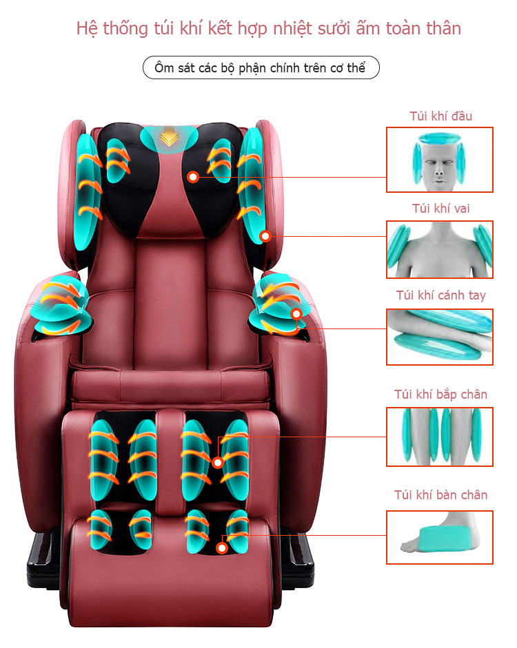 Ghế massage cũ ai cũng lầm tưởng là hàng cũ thì đấm bóp không thể bằng hàng mới được, nhưng không hẳn hoàn toàn như vậy, ghế massage được cấu tạo bởi hệ thống bộ cơ gồm các motor để điều khiển con lăn đấm, bóp, xoa, day, ấn huyệt và hệ thống bóp hơi toàn thân (đầu, vai, tay, mông, chân).