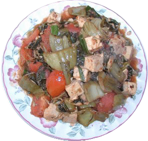 Cắt dưa muối ra từng miếng nhỏ. Tàu hủ thì cắt ra từng miếng vuông độ một phân. Lấy cà cắt ra làm bốn hay sáu, tùy trái lớn hay nhỏ.