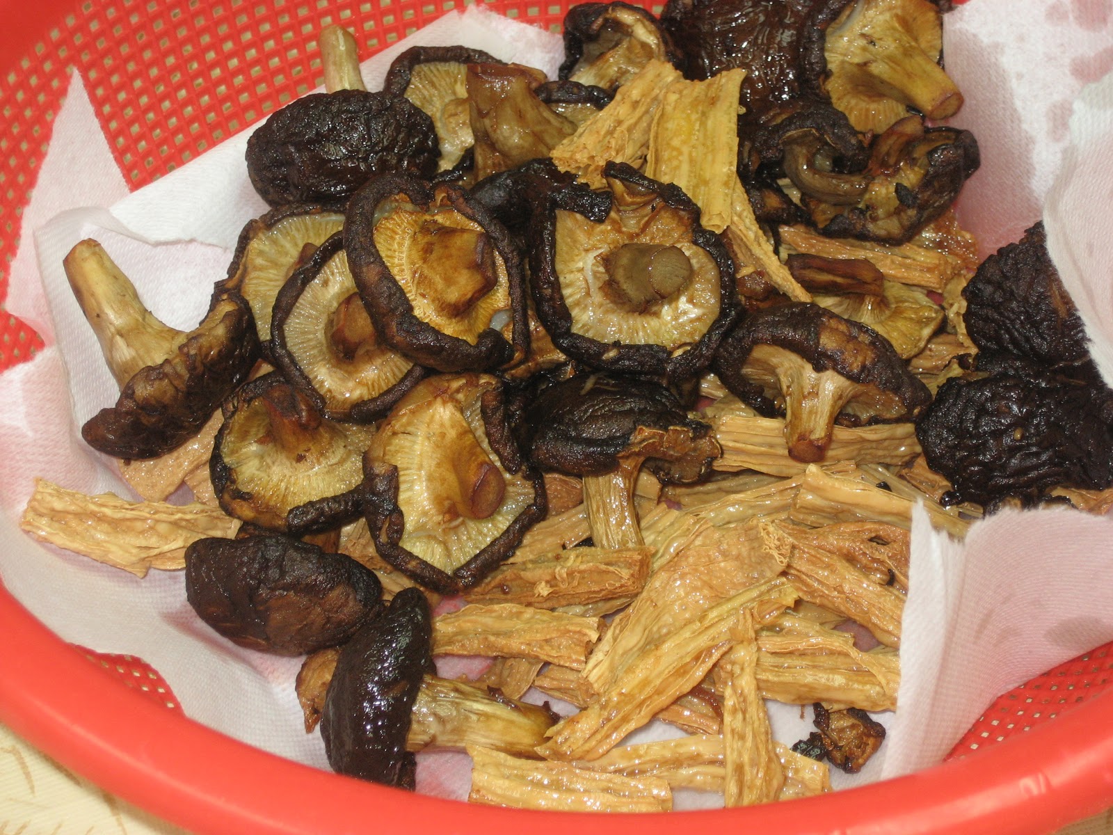 với tàu hủ ky cọng khô, ngâm nước cho mềm, vắt ráo,