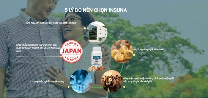 [font=arial]Viên uống Insuna Nhật Bản giúp kiểm soát tốt chỉ số đường huyết sau ăn, ổn định đường huyết và giảm nguy cơ biến chứng của bệnh tiểu đường do được kết hợp hoàn hảo từ những thành phần thảo dược tự nhiên và công nghệ Salacimal. [/font]