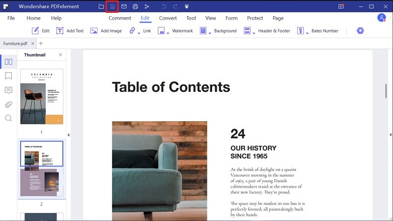 Khi bạn đã xóa tất cả các trang PDF, bây giờ bạn có thể lưu tài liệu của mình. Điều hướng con trỏ đến menu chính và nhấp vào biểu tượng ổ đĩa lưu và chương trình sẽ lưu các thay đổi đã thực hiện.