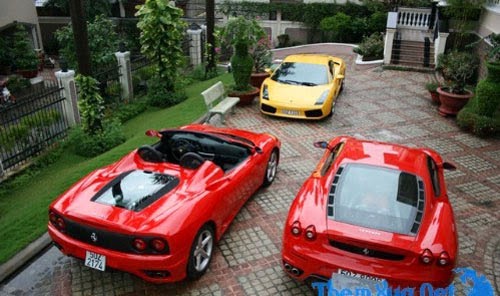 Thời mới nổi, bộ sưu tập xe của Cường "đô-la" từng được chuyên trang ô tô của Mỹ Autoguide.com so sánh với bộ sưu tập của một thiếu gia người Ả-rập. Gây ấn tượng nhất trong loạt ảnh đăng trên Autoguide là bức ảnh chụp hai chiếc Ferrari màu đỏ và một chiếc Lamborghini màu vàng đỗ trong sân nhà Cường.[/FONT]