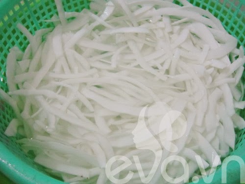 Bước 1: Dừa đem gọt bỏ phần vỏ nâu bên ngoài, dùng dao cắt đôi quả dừa. Dùng nạo, nạo theo vòng tròn của quả dừa để được những sợi dừa dài và mỏng.